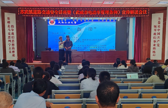 为进一步增强广大群众交通安全意识,规范电动车管理,预防和减少道路交通事故发生,9月2日上午,苏武镇联合镇交警中队开展了道路交通安全讲座暨《武威市电动车管理条例》宣传解读活动。镇村干部职工、交通劝导员及群众代表共120余人现场参加。